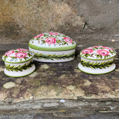 Cabbage Rose and Rosemary Large Heart Trinket Box GBC