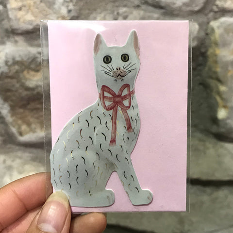 Pink Bow Gilt Cat Gift Tag