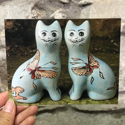 Chinese Butterfly Tiny Cats Wemyss Ware Postcard