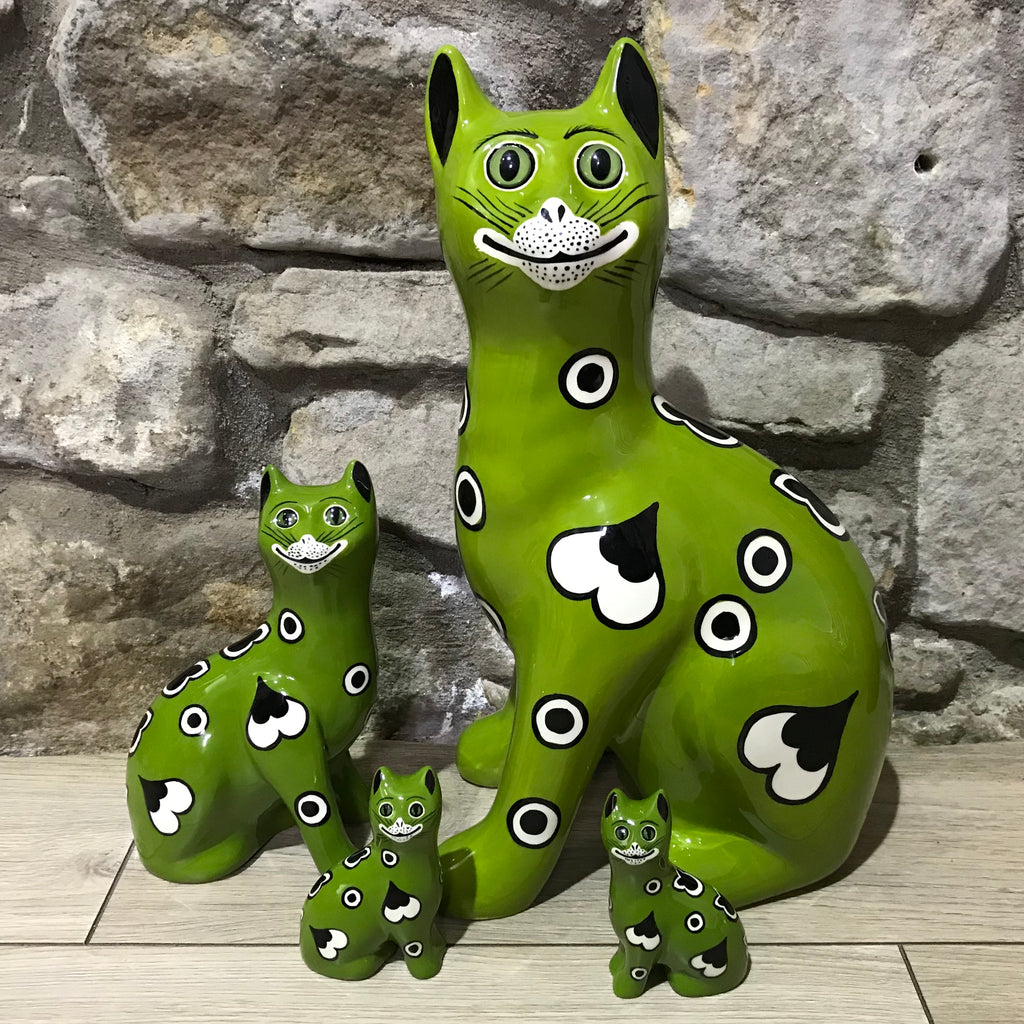 Wemyss Ware® cats have a striking similarity to their cousins the Gallé cats made in Nancy by Emile Gallé. They come in a variety of sizes and patterns, always with a cheerful smile. They are our most popular shape.