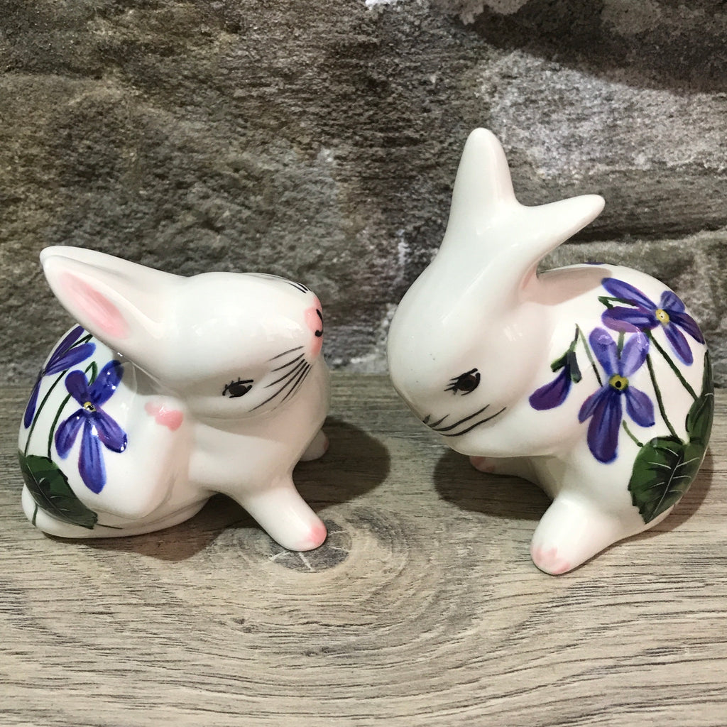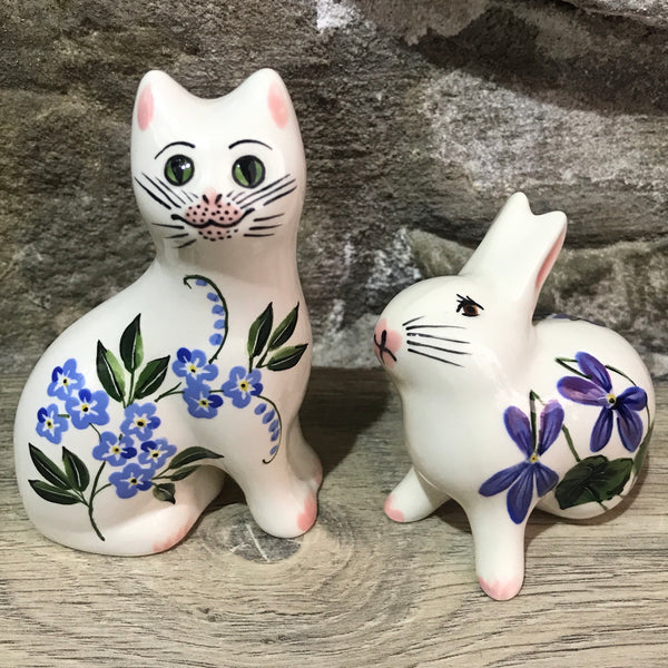 Wemyss Ware® rabbits were introduced later than cats and pigs, during the 1930s. We make two sizes of rabbit - a lifesize one and a tiny three inch one in two poses, often sold as a pair.