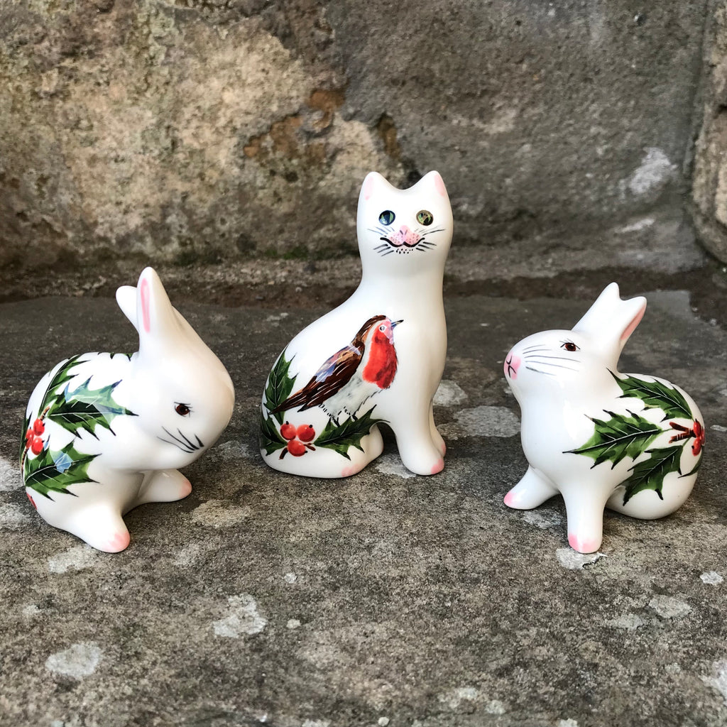 Wemyss Ware® rabbits were introduced later than cats and pigs, during the 1930s. We make two sizes of rabbit - a lifesize one and a tiny three inch one in two poses, often sold as a pair.