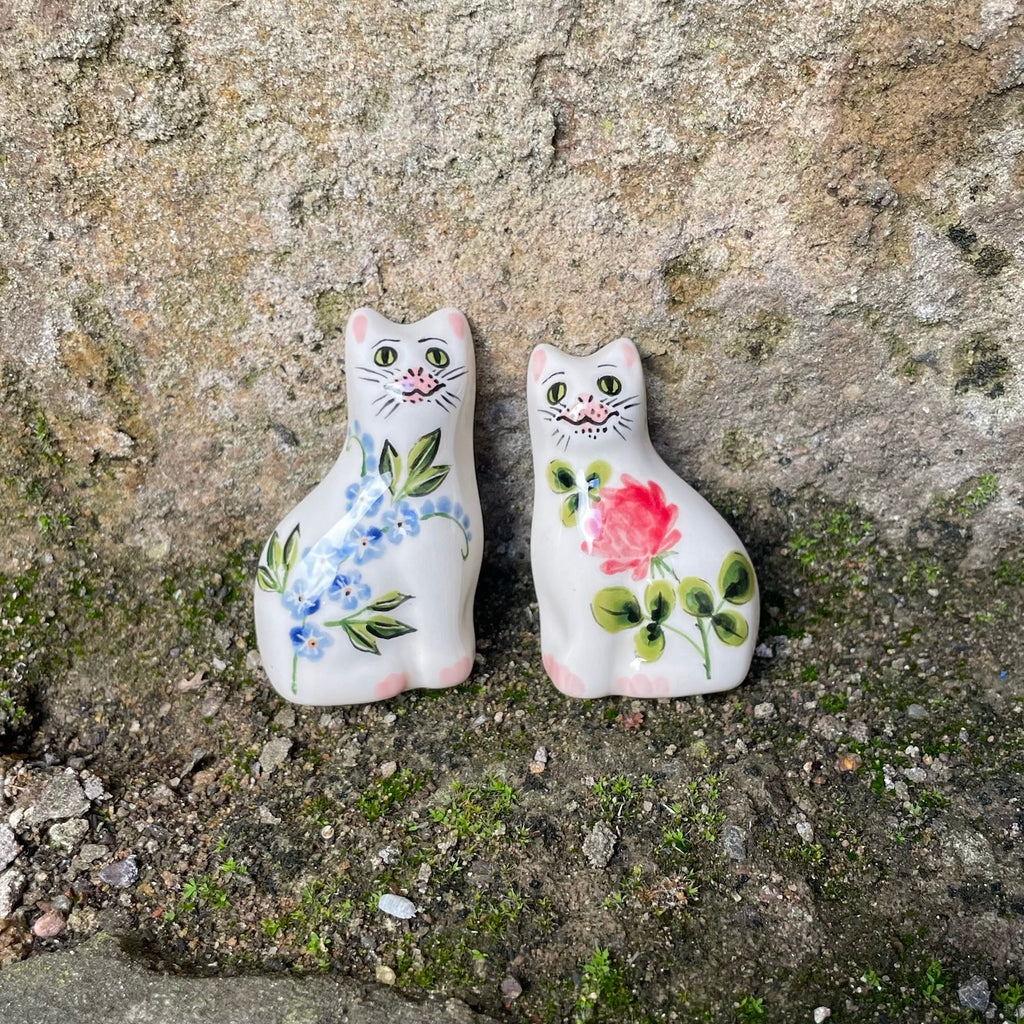 Wemyss Ware® cats have a striking similarity to their cousins the Gallé cats made in Nancy by Emile Gallé. They come in a variety of sizes and patterns, always with a cheerful smile. They are our most popular shape.