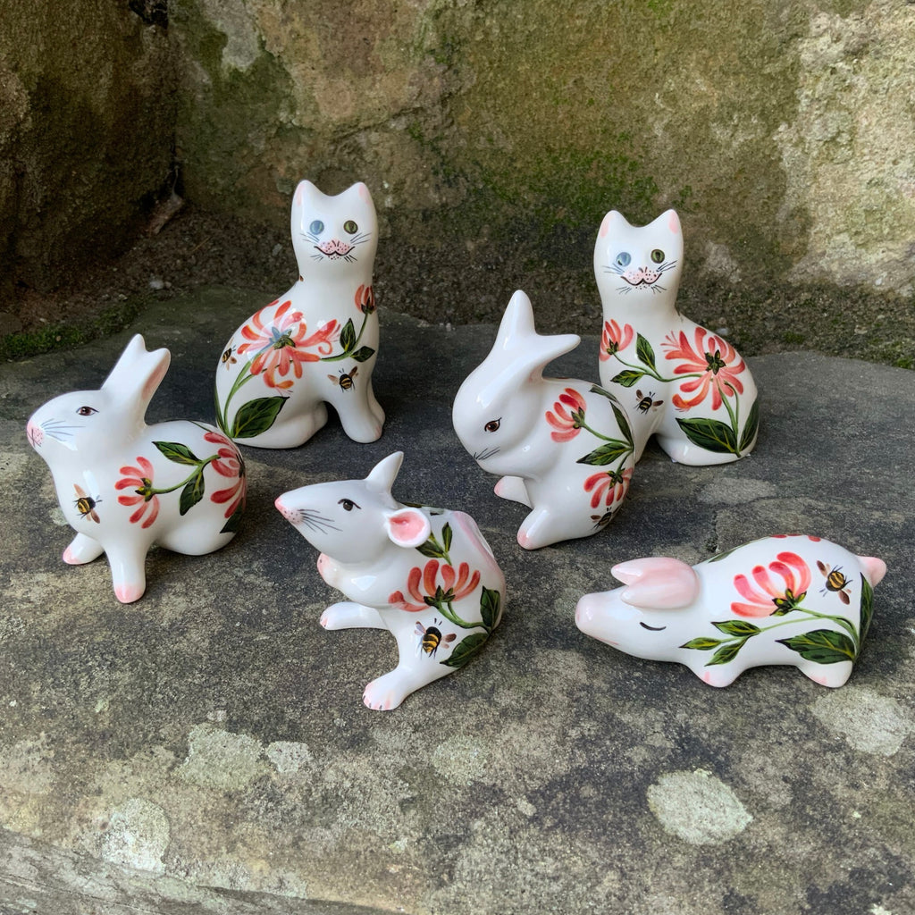 Each piece is hand painted by our talented Pottery Ladies and we can personalise any design, whether it is a wee bee to finish it off or some meaningful names, dates, or sayings. Or how about your favourite flower or a beloved pet? We can even hand sculpt a mouse or butterfly onto a piece for you, the world is your oyster!