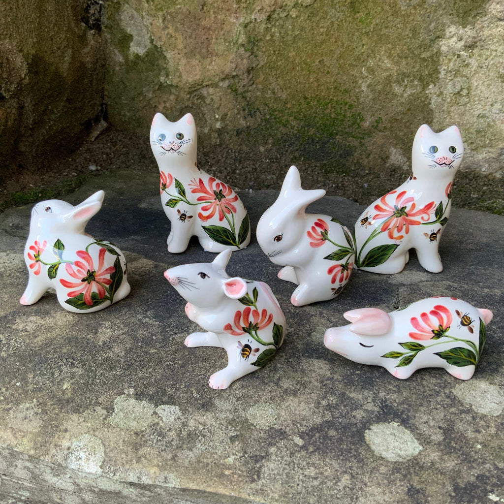 Wemyss Ware® rabbits were introduced later than cats and pigs, during the 1930s. We make two sizes of rabbit - a lifesize one and a tiny three inch one in two poses, often sold as a pair.