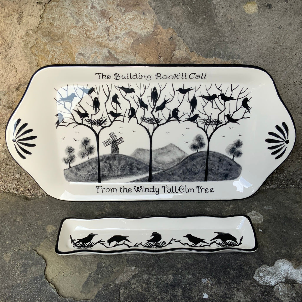 The Earlshall design is named after Earlshall Castle in Fife, which had a row of elms with rooks' nests. A strong, stylised design, it sometimes incorporates quotes from popular poems. This pattern was brought out in the early twentieth century.