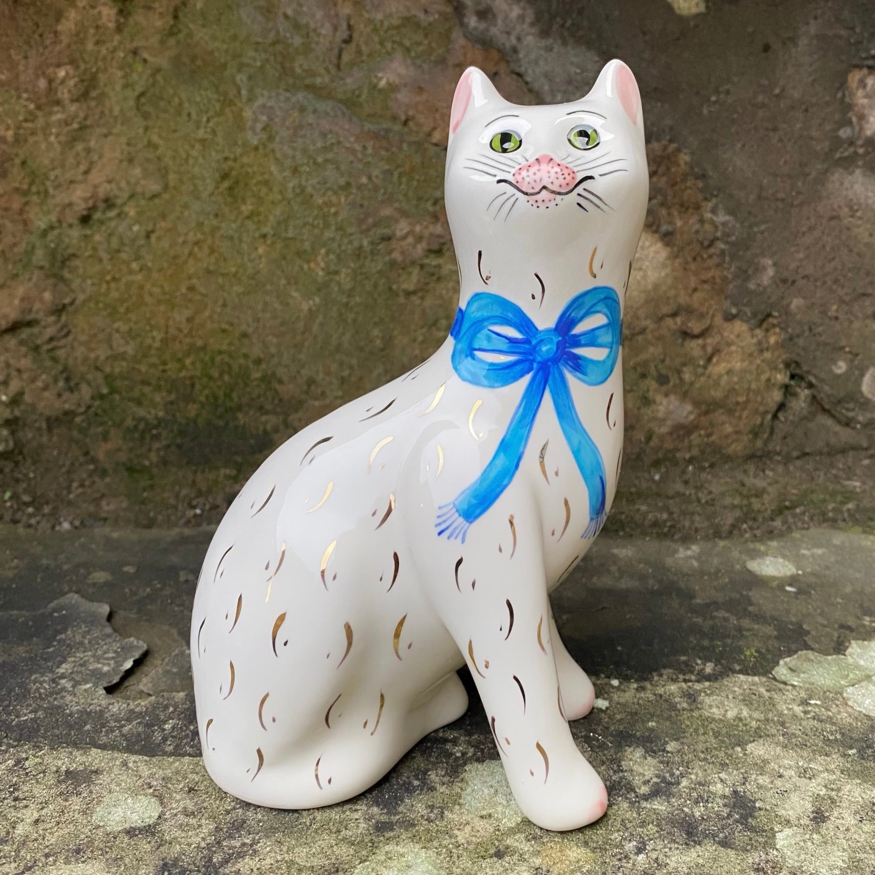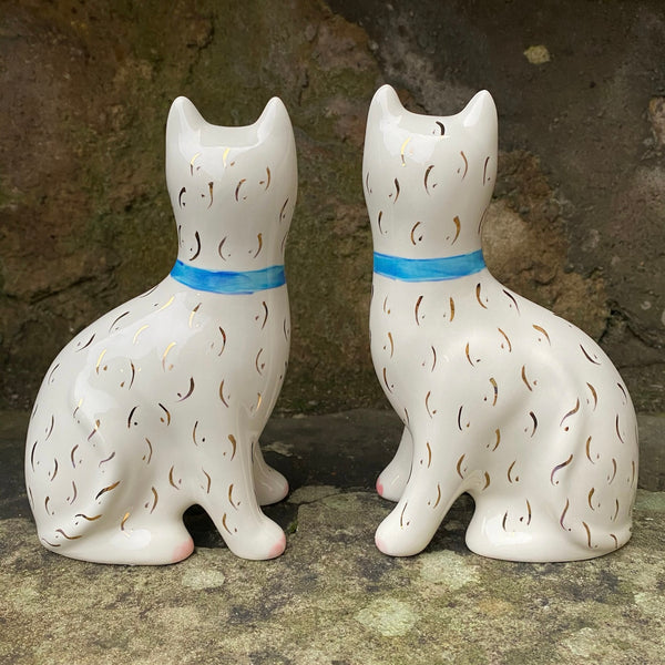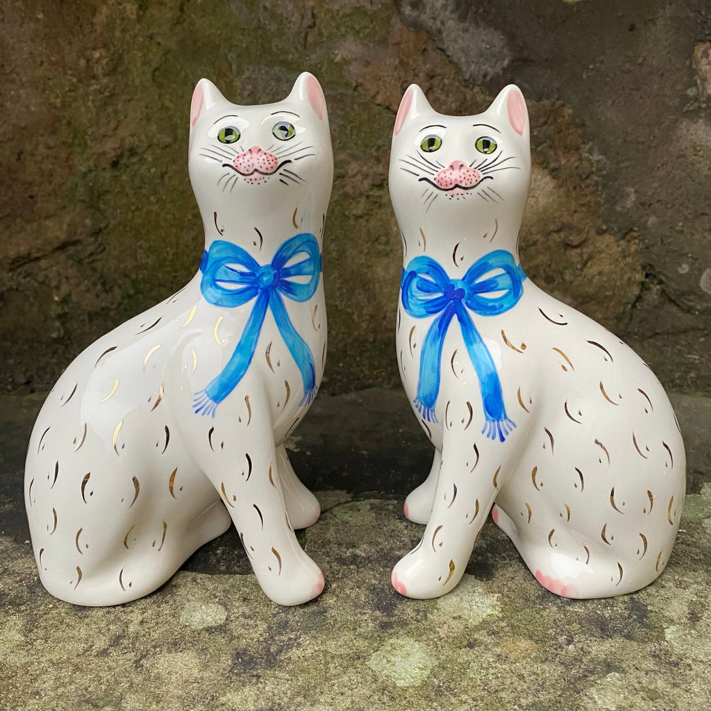 These lovely cats with bows of various colours and gold flecks were early traditional designs and are catty versions of the wally dogs.