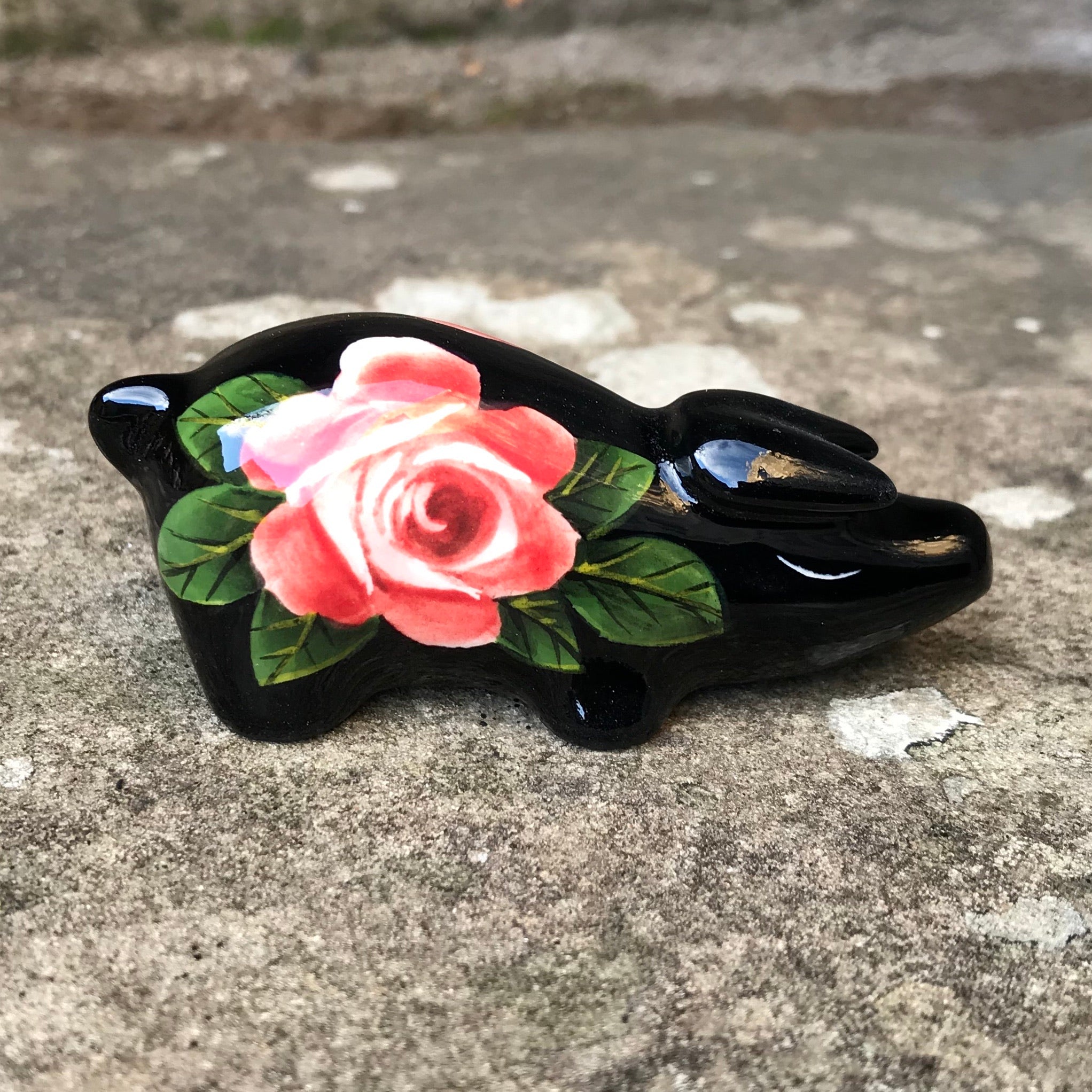 Cabbage Rose Black Tiny Pig
