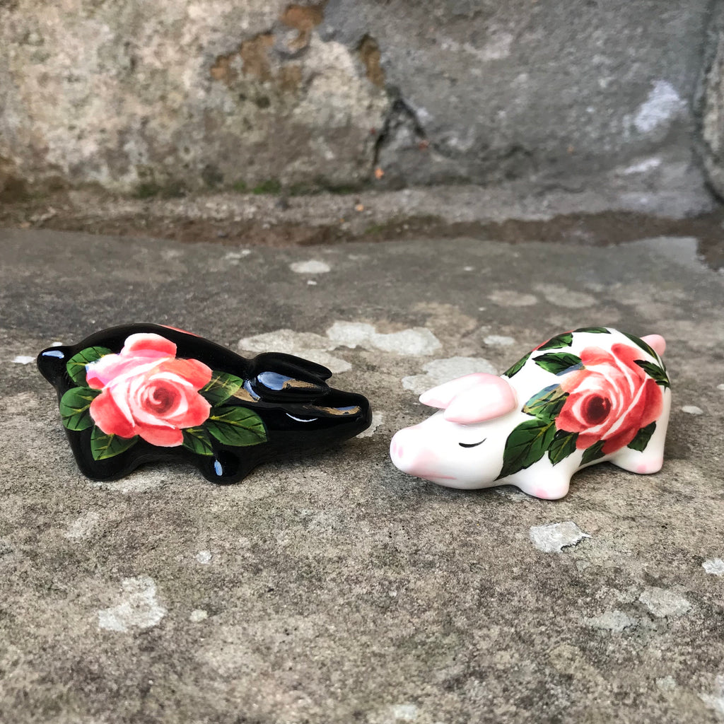 In Bohemia the pig is a symbol of good luck, and chocolate pigs are traditional New Year presents. It is believed that Karel Nekola brought his enthusiasm for pigs with him from his homeland, and persuaded his boss at the Fife Pottery to make them in several sizes. They were an immediate success, finding their way into many living rooms to enchant generations.