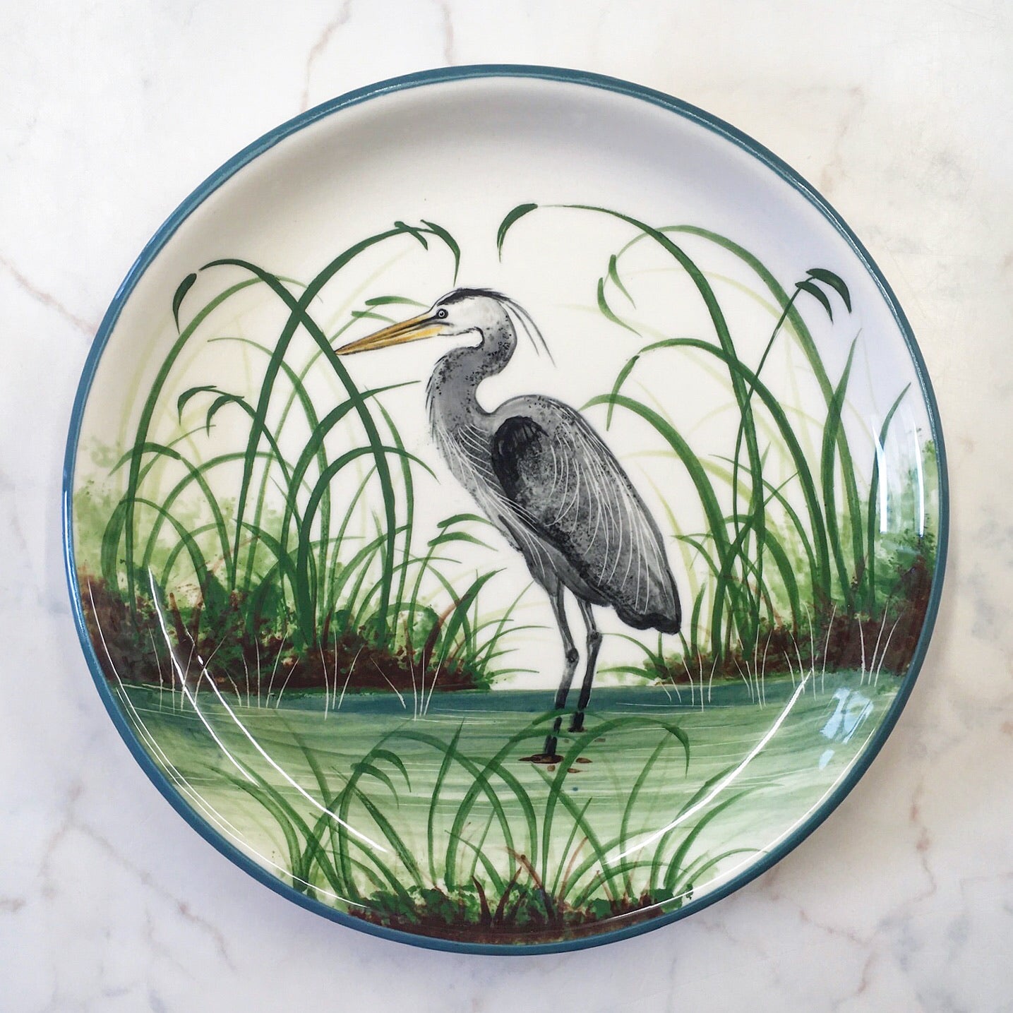 Griselda has hand painted this beautiful Heron plate including water and reeds, similar to our Dragonfly design.