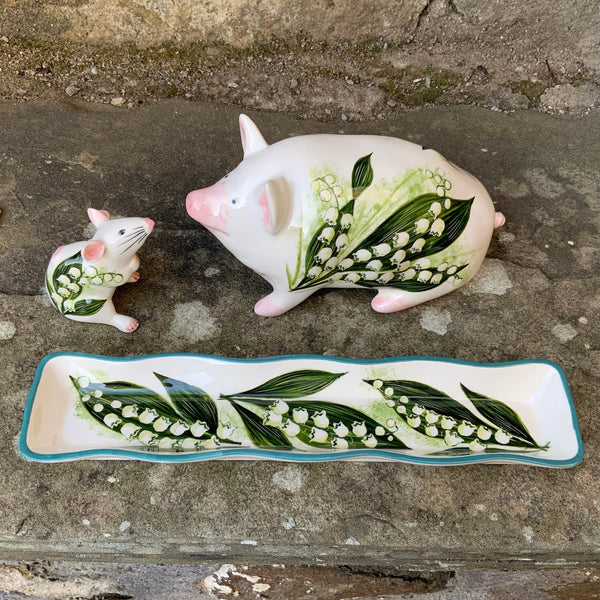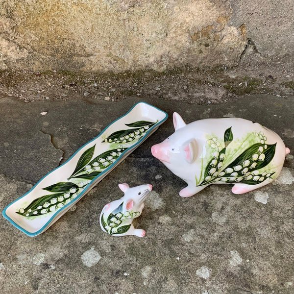 In Bohemia the pig is a symbol of good luck, and chocolate pigs are traditional New Year presents. It is believed that Karel Nekola brought his enthusiasm for pigs with him from his homeland, and persuaded his boss at the Fife Pottery to make them in several sizes. They were an immediate success, finding their way into many living rooms to enchant generations.