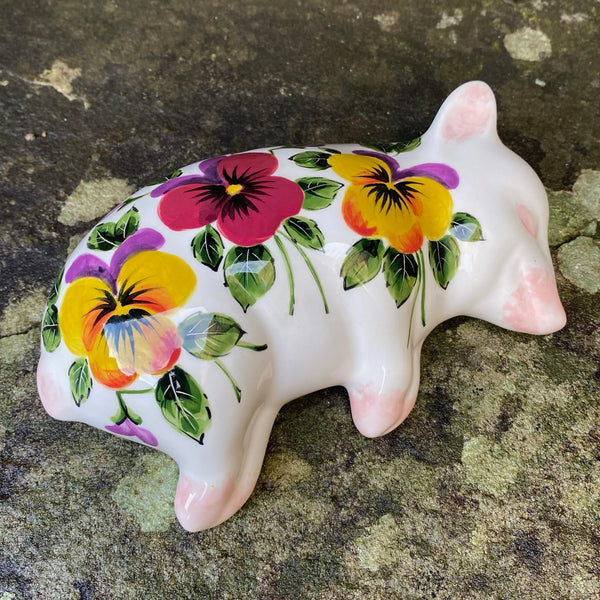 In Bohemia the pig is a symbol of good luck, and chocolate pigs are traditional New Year presents. It is believed that Karel Nekola brought his enthusiasm for pigs with him from his homeland, and persuaded his boss at the Fife Pottery to make them in several sizes. They were an immediate success, finding their way into many living rooms to enchant generations.