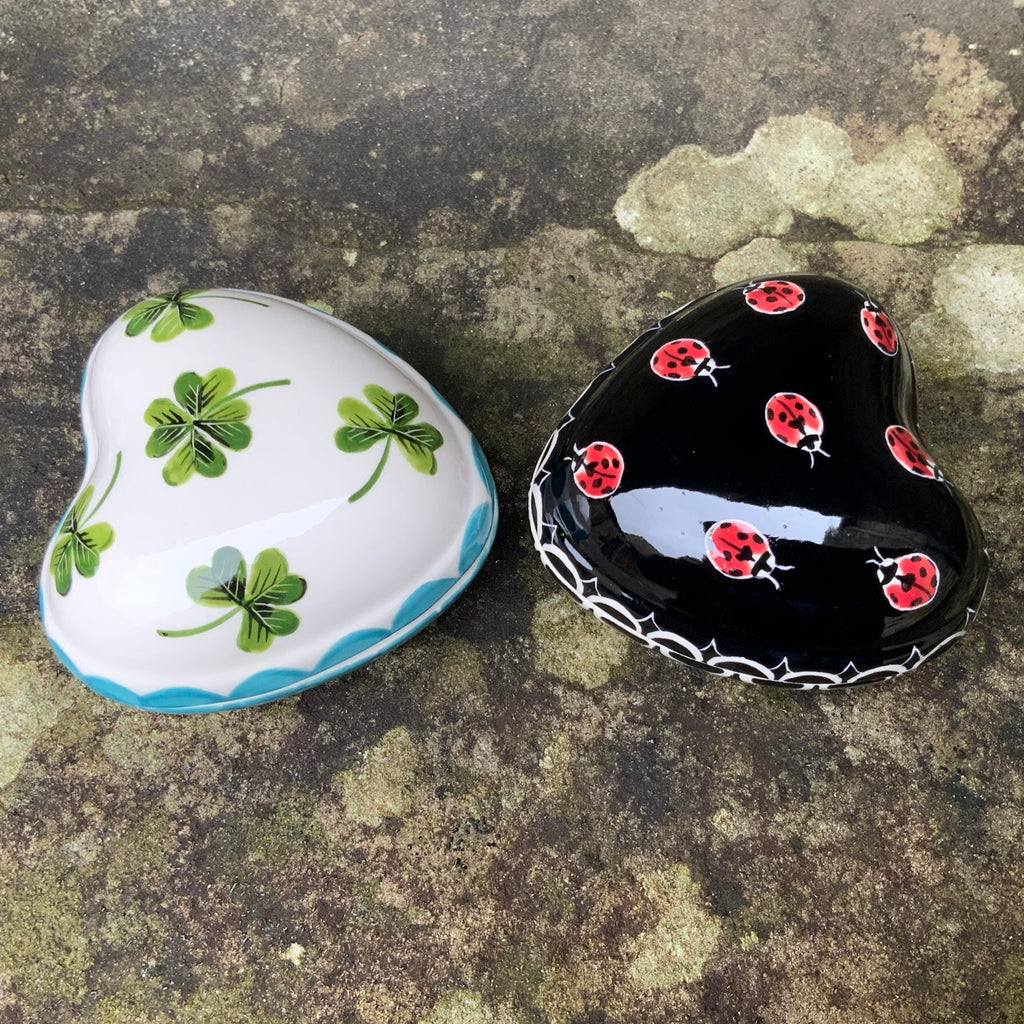 Each piece is hand painted by our talented Pottery Ladies and we can personalise any design, whether it is a wee bee to finish it off or some meaningful names, dates, or sayings. Or how about your favourite flower or a beloved pet? We can even hand sculpt a mouse or butterfly onto a piece for you, the world is your oyster!