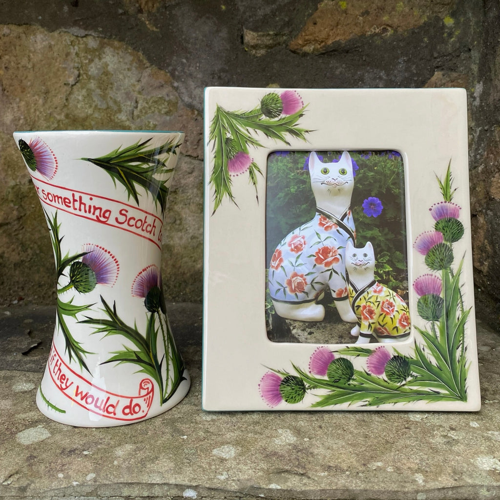 Wemyss Ware® has always been proud to be Scottish. It has used the thistle, the ‘flow’r of Scotland’, on many of its shapes and designs. The lovely spiky thistle with its delicate purple flowers is the traditional Flower of Scotland, and adorns many Wemyss® pieces.