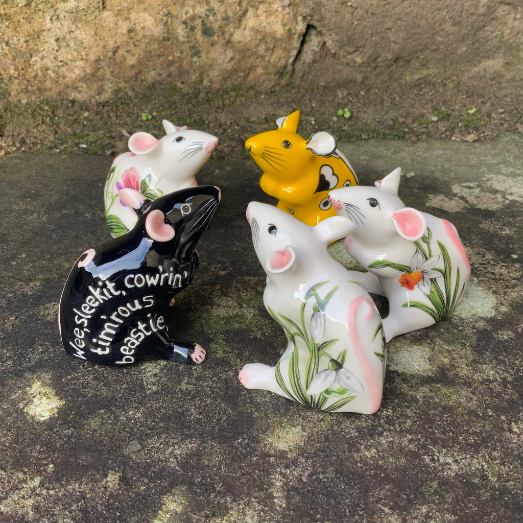 Each piece is hand painted by our talented Pottery Ladies and we can personalise any design, whether it is a wee bee to finish it off or some meaningful names, dates, or sayings. Or how about your favourite flower or a beloved pet? We can even hand sculpt a mouse or butterfly onto a piece for you, the world is your oyster!